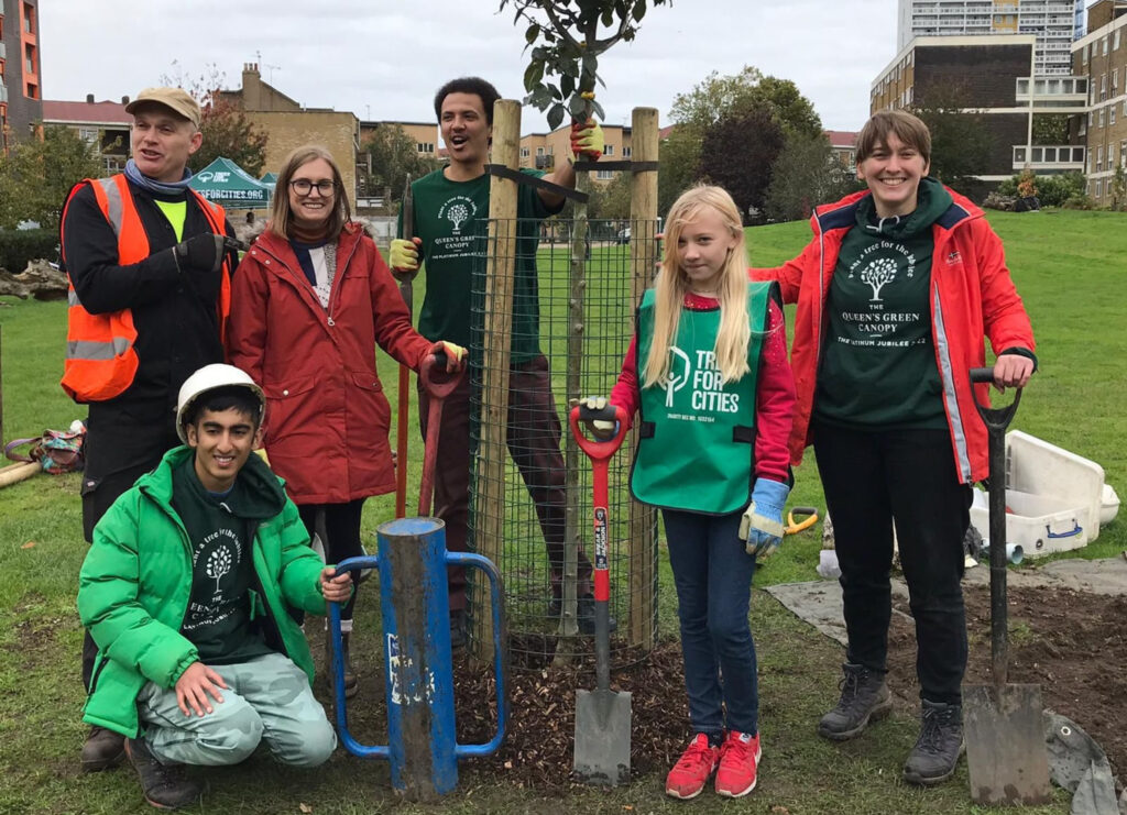 The QGC delivered its first urban greening project at Furze Green in Tower Hamlets. The local community came together to create a canopy by the planting of 17 magnificent trees which will transform the area into a leafy oasis for residents to enjoy. An area of high socio-economic deprivation, Tower Hamlets also has one of the lowest canopy cover densities in London at 12.5%, in comparison with an average of 21.8% for the city overall.